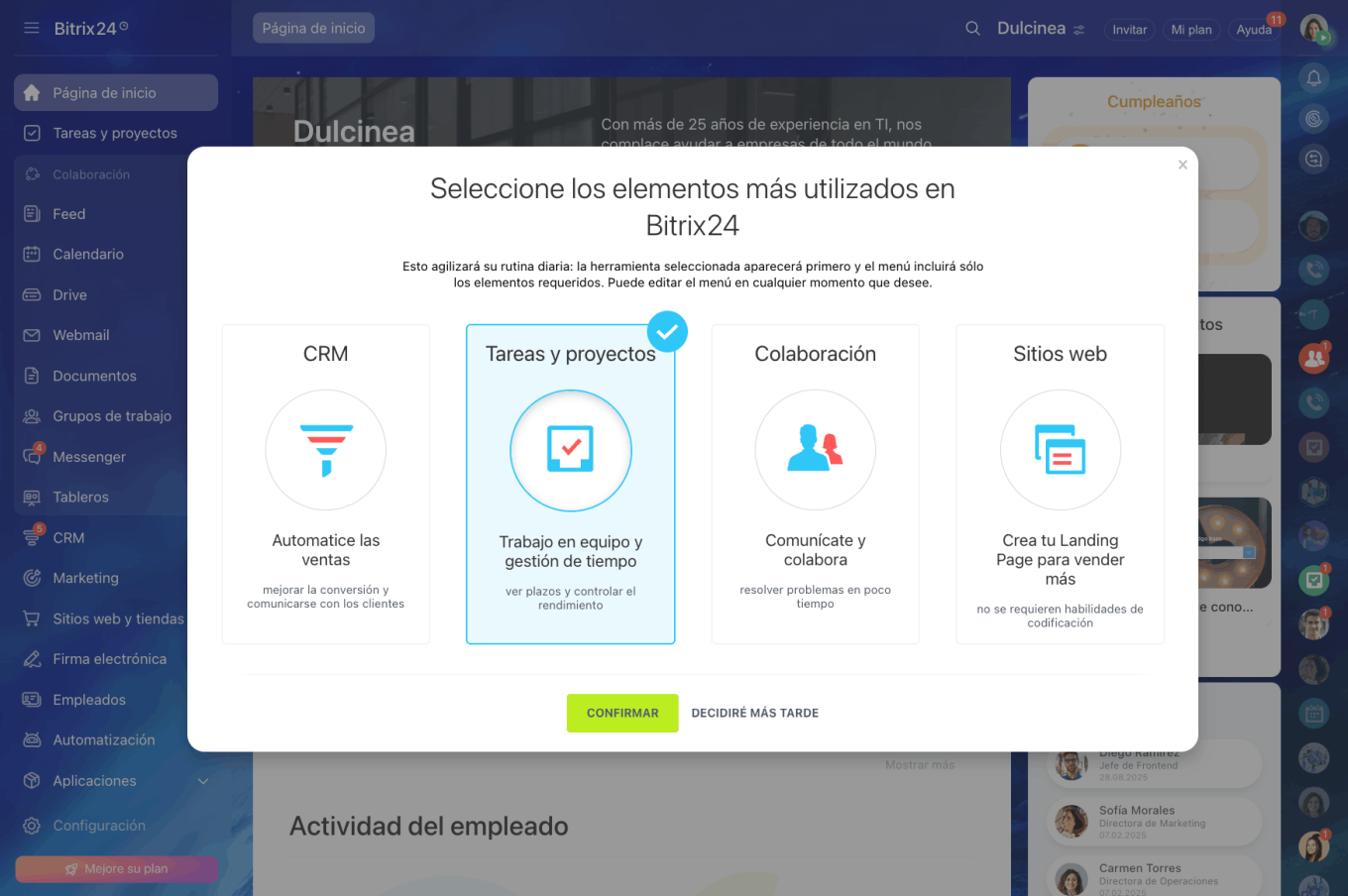 Al tratarse de una solución que integra tareas, proyectos, CRM, comunicación interna y automatizaciones, el éxito depende de dar los primeros pasos con una visión clara. Comprender las funcionalidades clave desde el inicio sienta las bases para un trabajo más eficiente y estructurado.