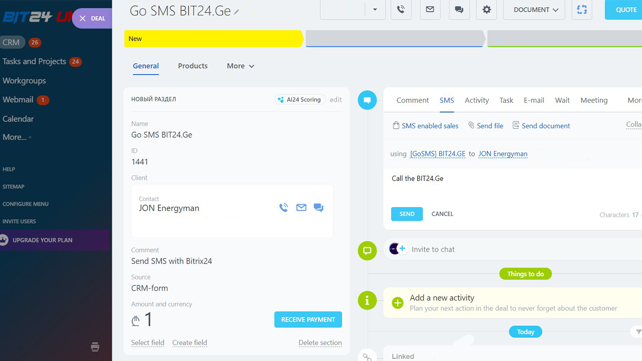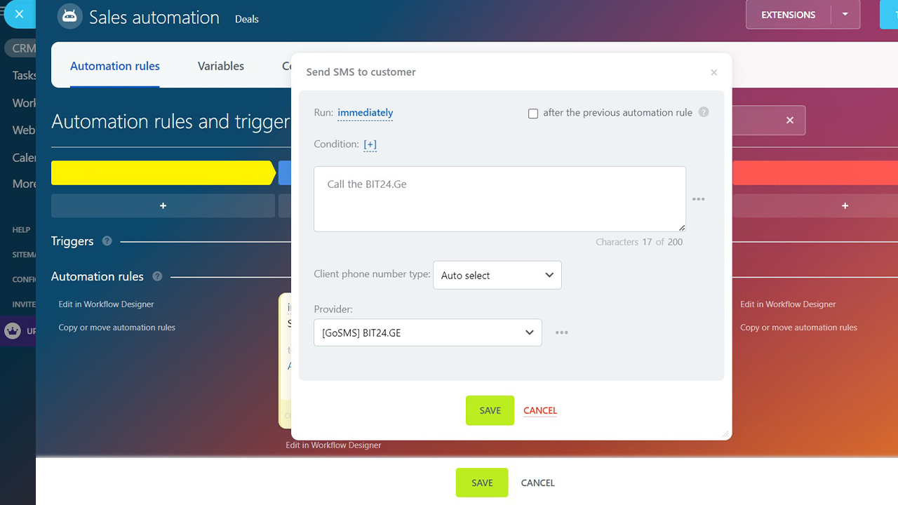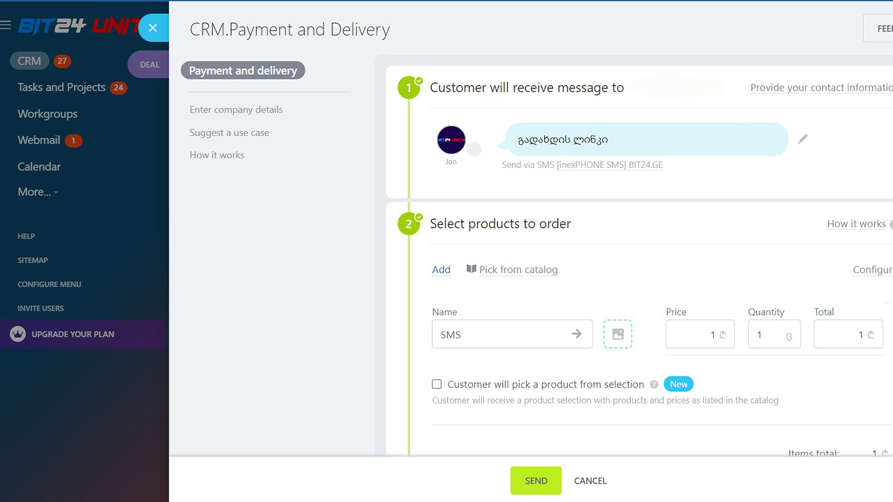 GoSMS BIT24.Ge service allows you to send SMS manually or automatically, through:
