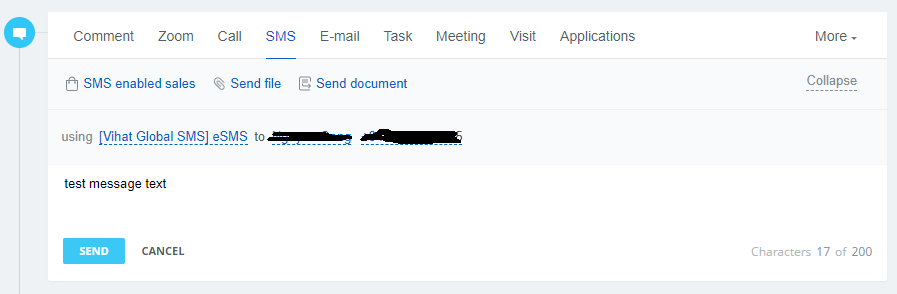 Save your configuration or contact us and select Vihat Global SMS as a vendor in “Send SMS” CRM automation rule.
