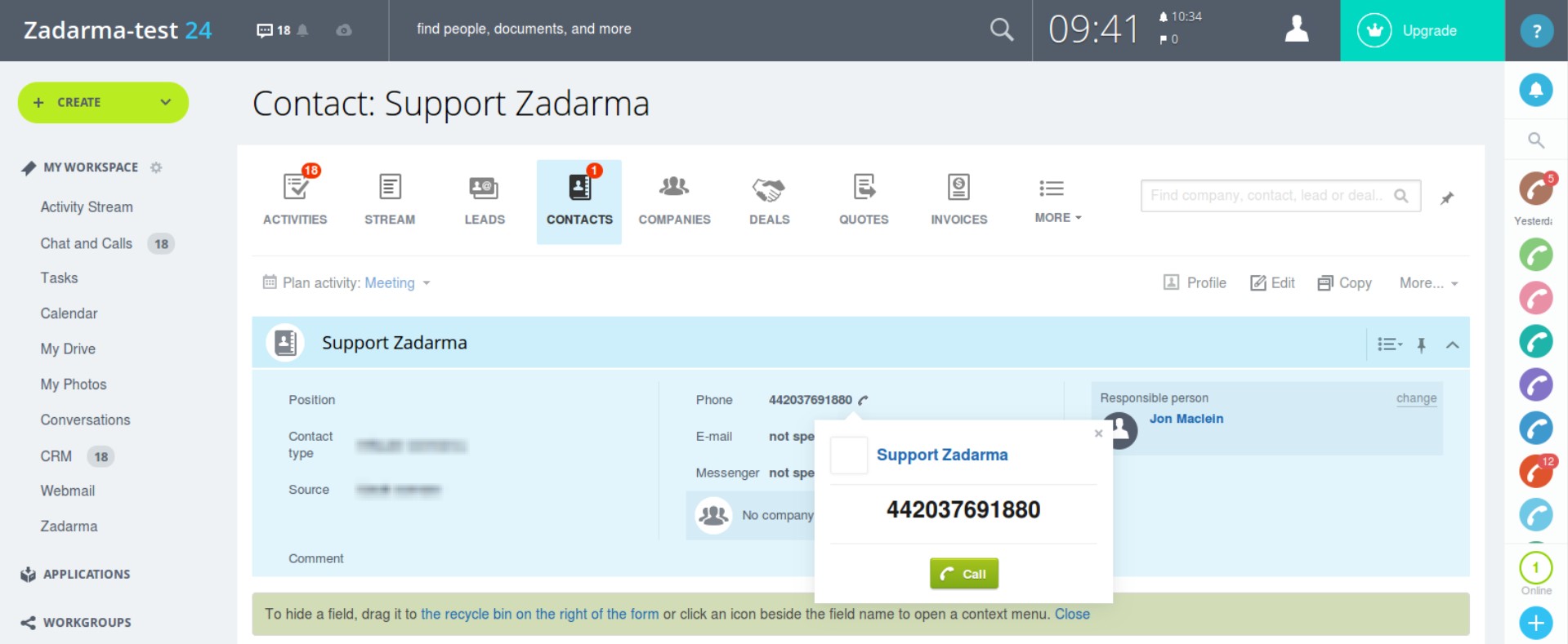 - Llamadas a los clientes desde Bitrix24 en un clic.