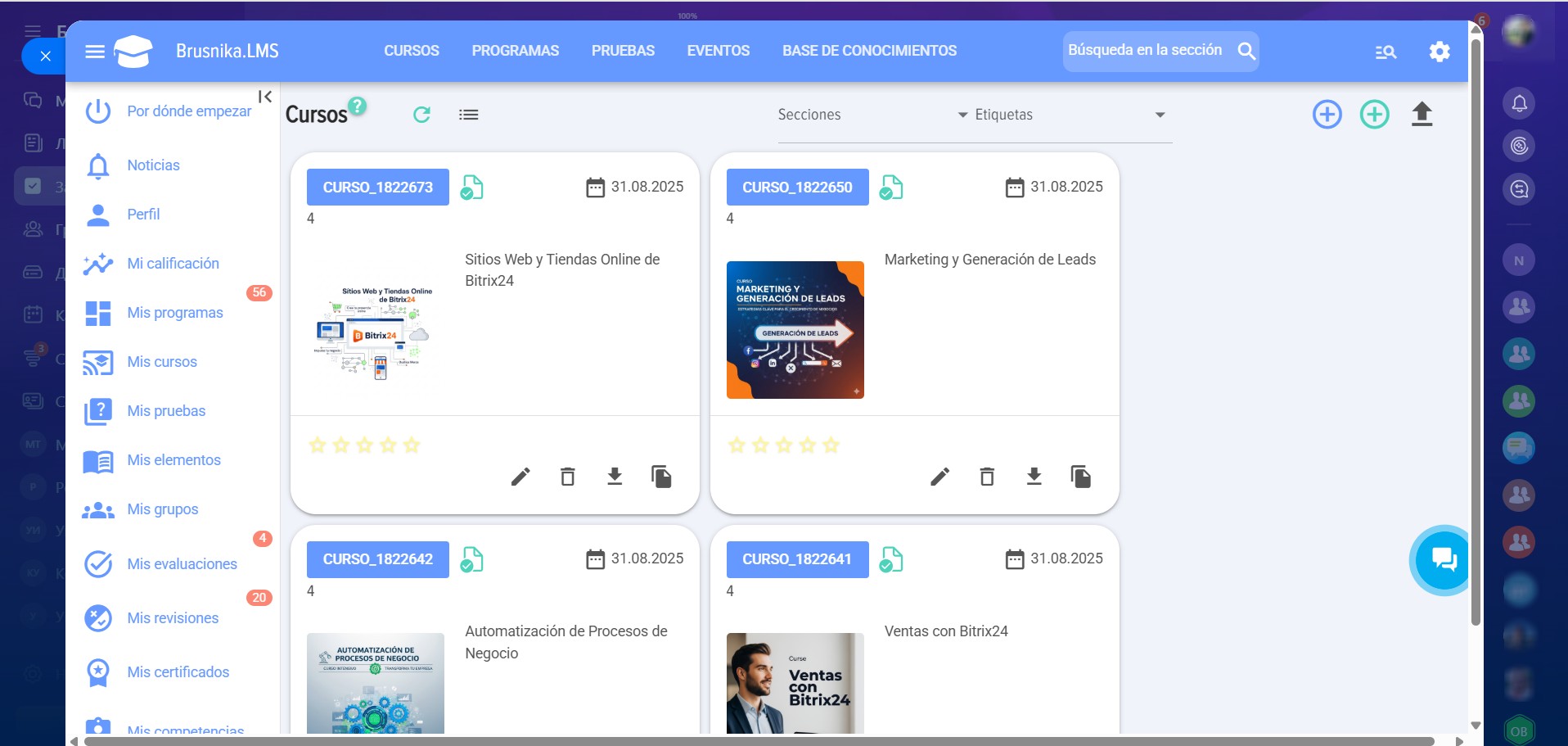 Transforme su Bitrix24 en un potente sistema de gestión de aprendizaje con Brusnika.LMS (anteriormente "University"). Cree su propia universidad corporativa, desarrolle las competencias de sus empleados y ofrezca capacitación tanto a equipos internos como a socios externos, todo sin el precio millonario de las soluciones LMS empresariales.