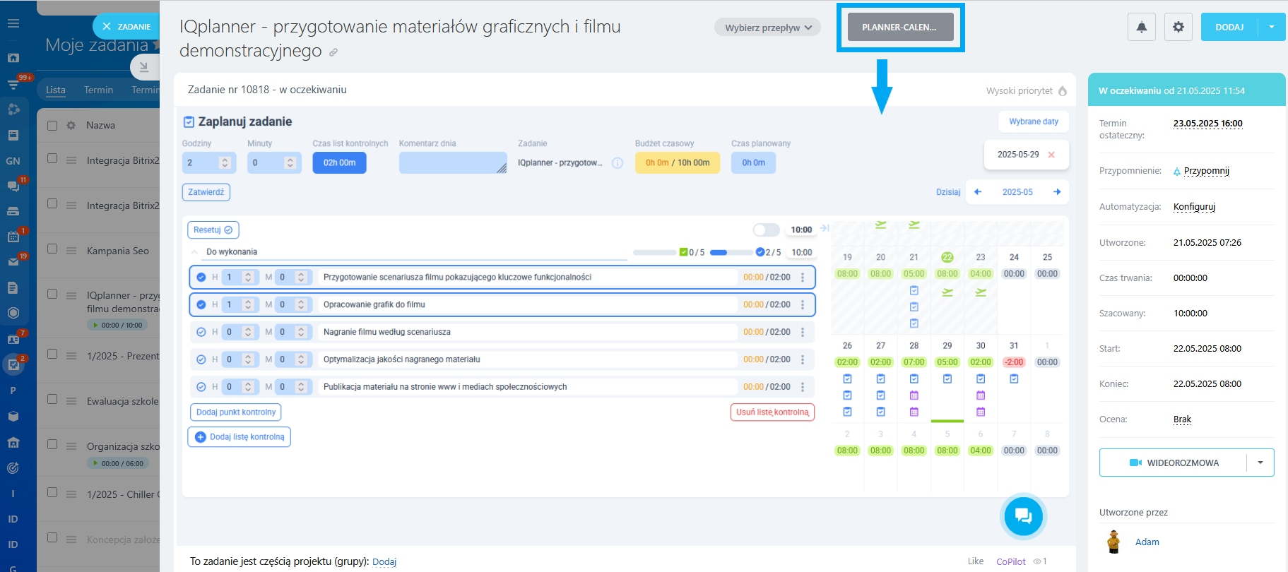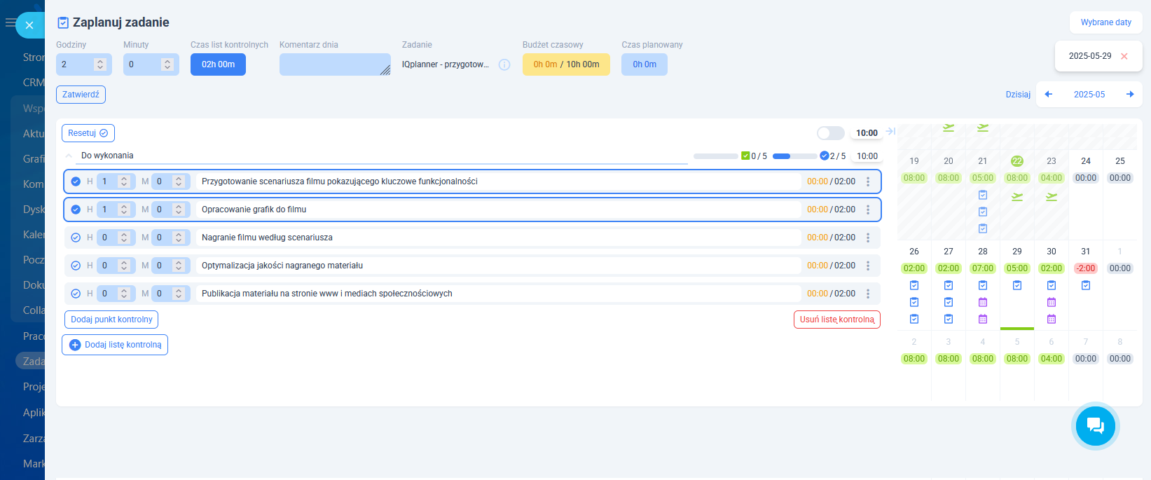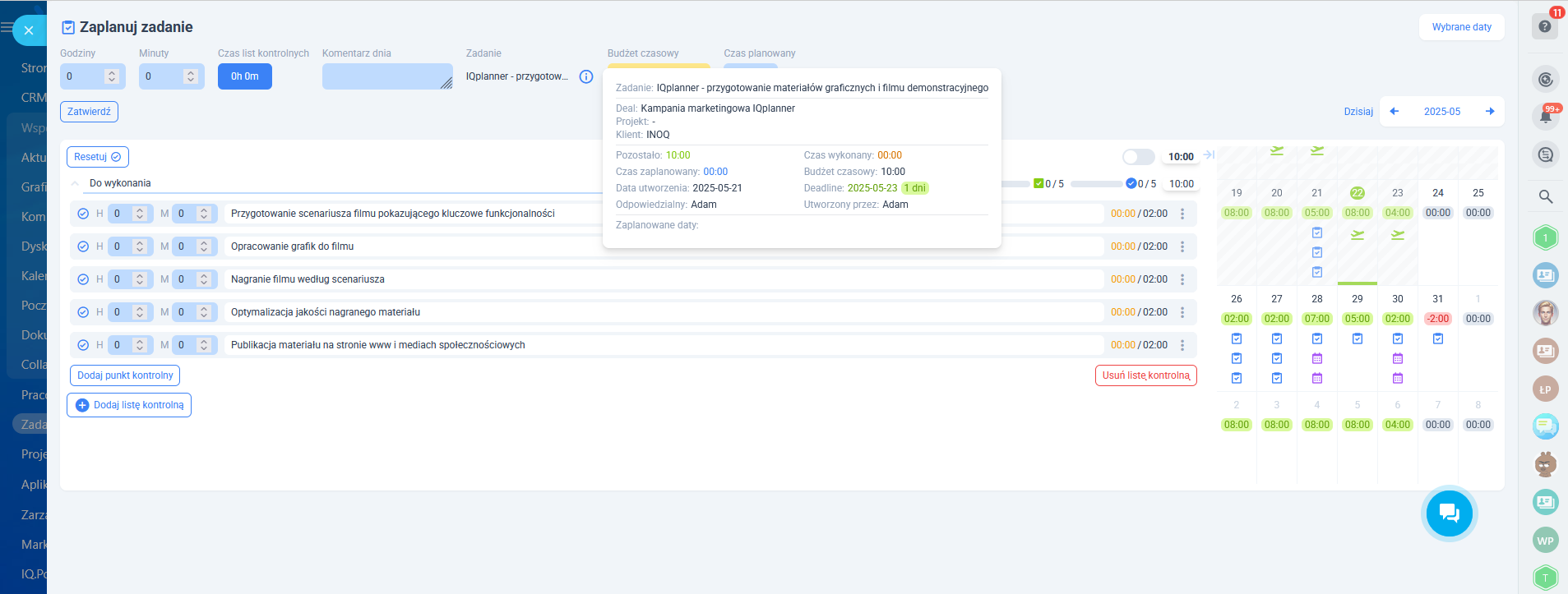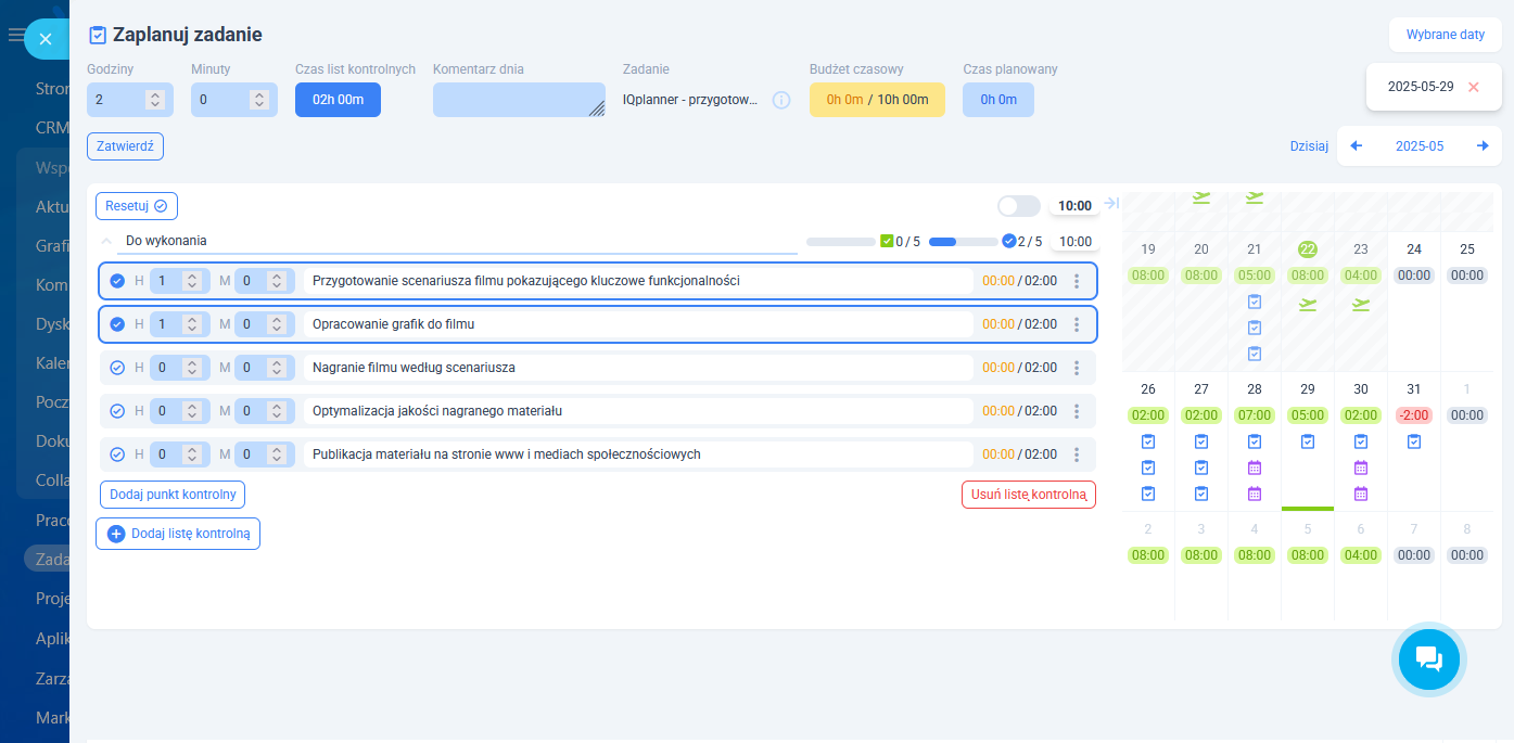 The most important update in version 2.0 is the introduction of checklist functionality and the ability to assign time budgets to each checklist item. As a result, planning becomes more realistic, and progress tracking is clearer and more structured.