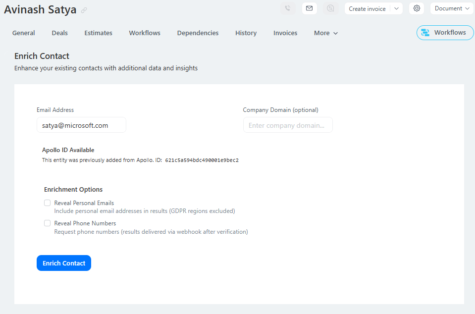 Enrich your Bitrix24 CRM contacts with Apollo