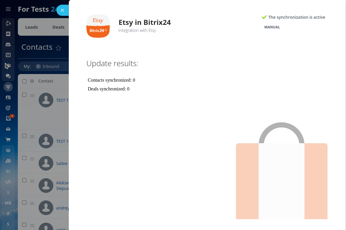 The app synchronizes Etsy receipts with deals in Bitrix24. Products are logged inside a Deal table with buyer imported as a contact. The app initiates a matching trigger upon receipt’s status update. Simultaneously, the deal’s status is updated as well via manually assigned app triggers, if required.