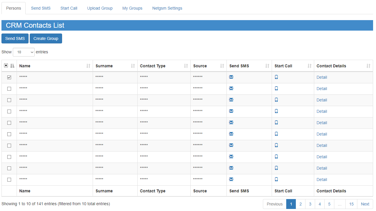 You can send SMS with Netgsm application and initiate calls with Netsantral which is a Netgsm product.