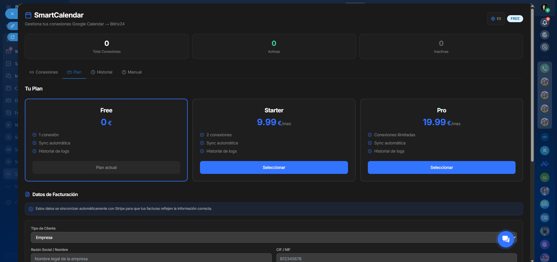 No se necesita software adicional. SmartCalendar funciona completamente dentro de tu portal de Bitrix24.