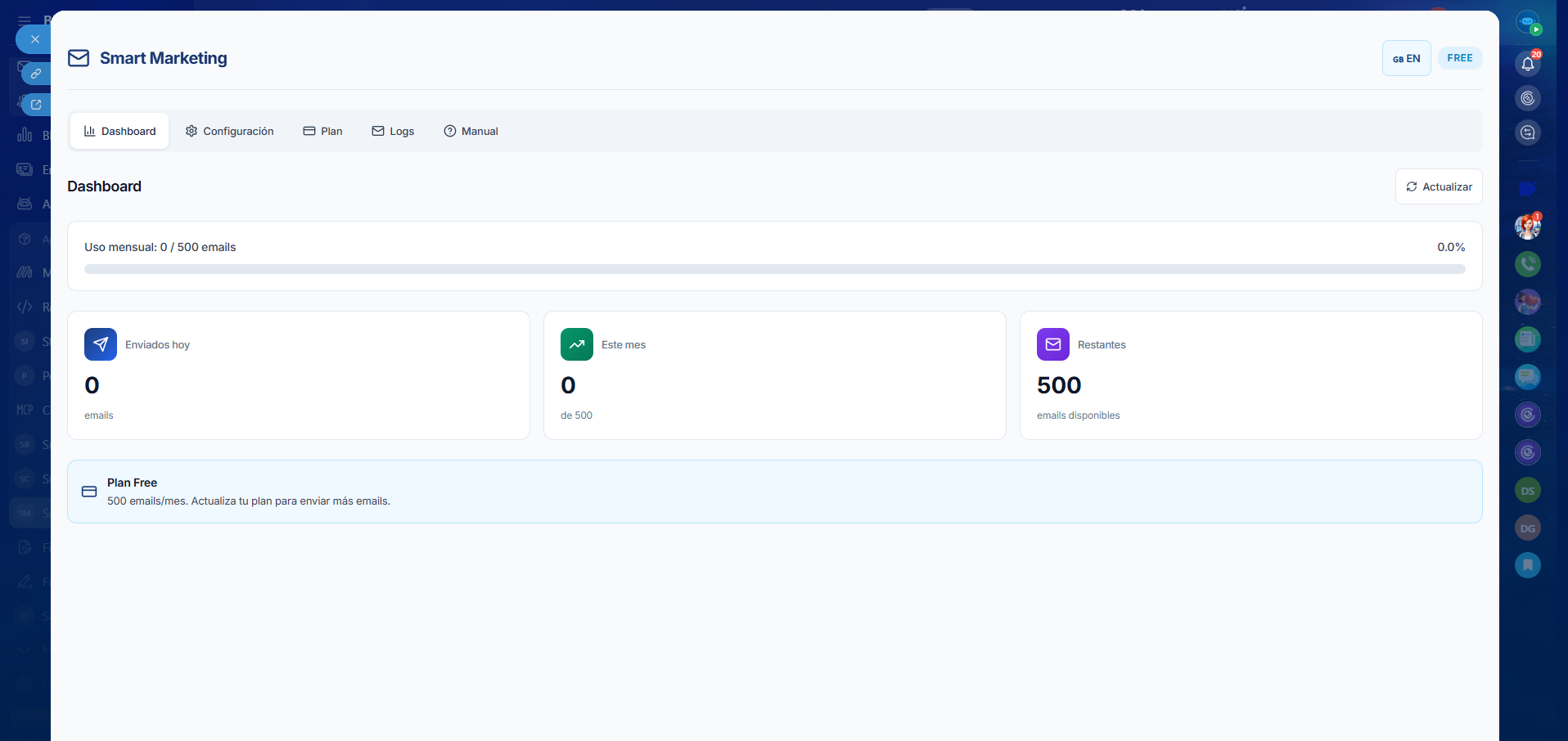 - Free — 500 emails/mes