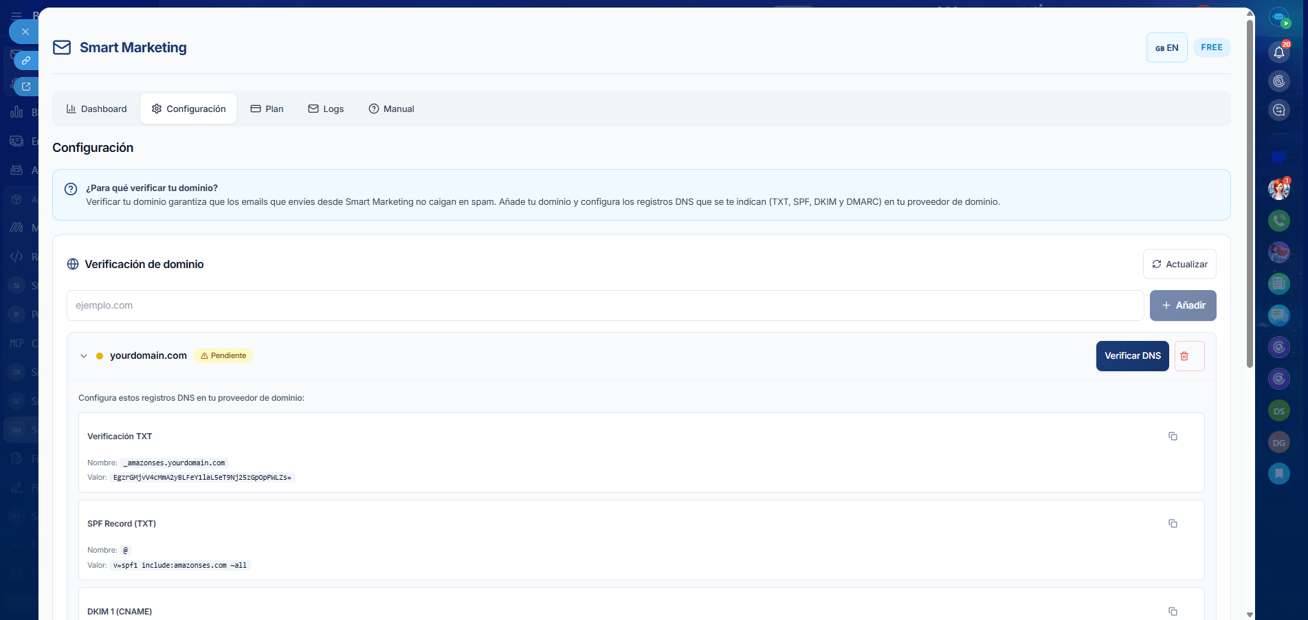 Los emails se envían desde tu propio dominio utilizando la infraestructura de Amazon AWS SES, garantizando la máxima entregabilidad, protegiendo la reputación de tu dominio y evitando que tus mensajes caigan en la carpeta de spam.