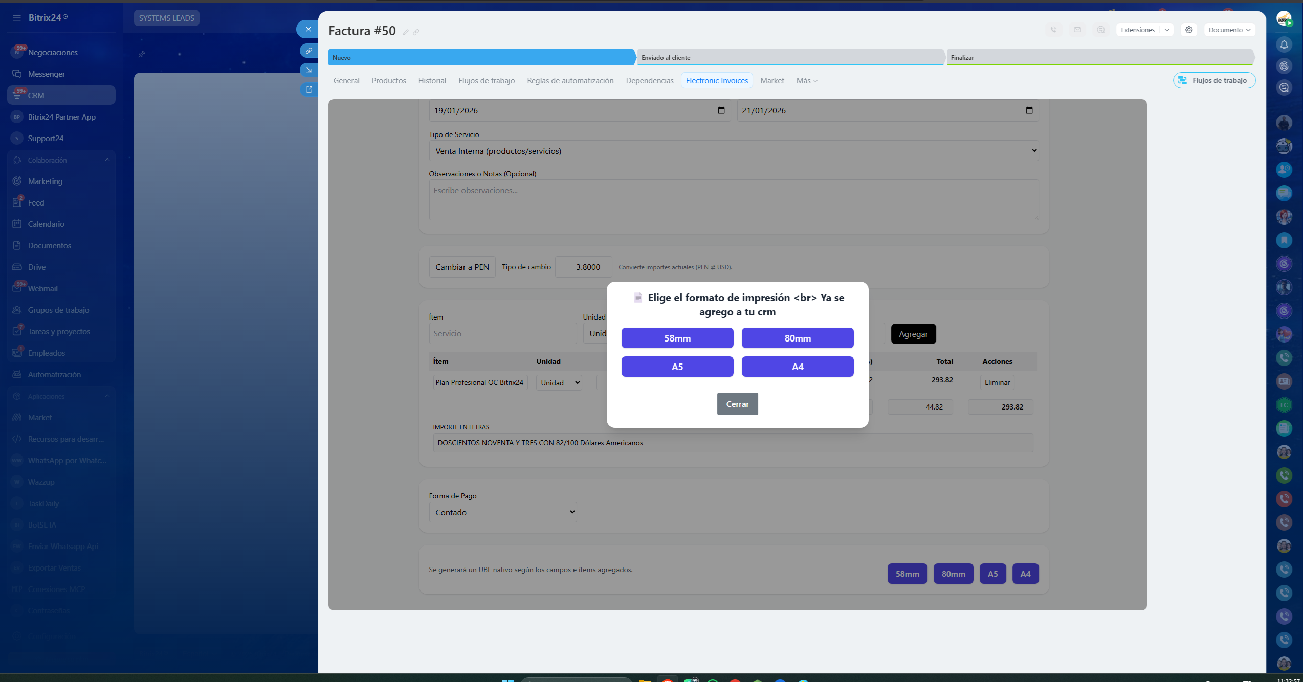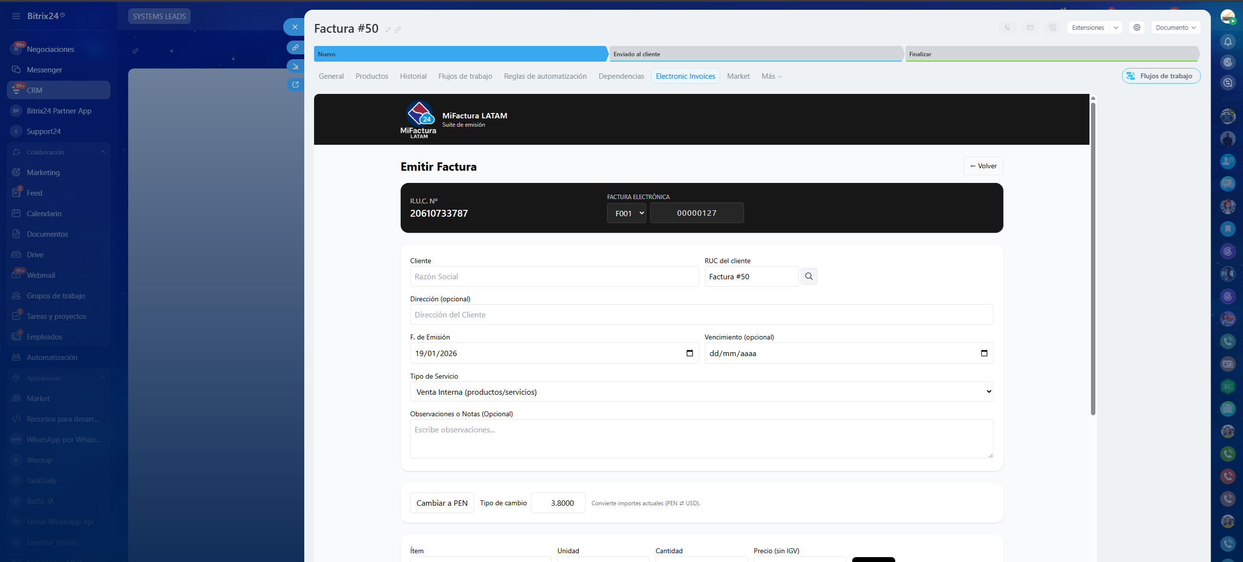 MiFactura LATAM: emite comprobantes SUNAT desde Bitrix24