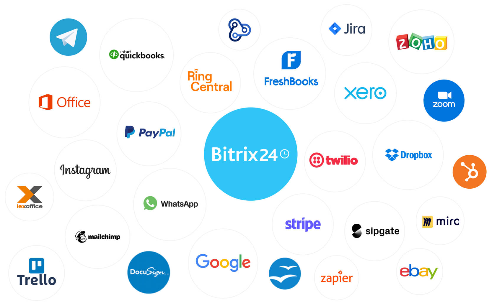 Además de las cientas de aplicaciones y complementos que puedes obtener en nuestro mercado, la edición local de Bitrix24 te permite integrar de manera personalizada prácticamente cualquier solución de terceros en tus flujos de trabajo y procesos empresariales.