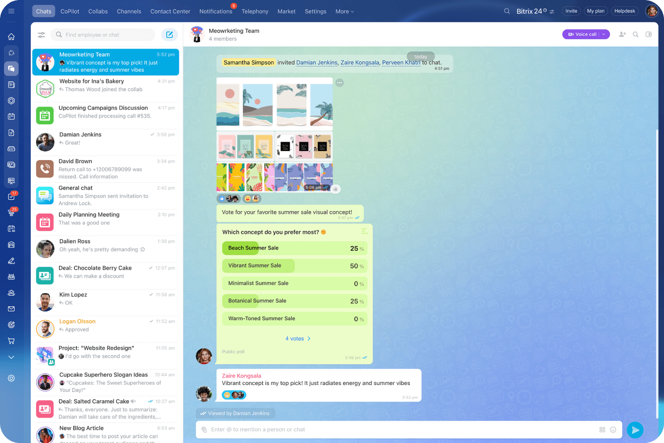 Bitrix24 Messenger garantiza una comunicación rápida, productiva y segura que está integrada de forma natural con el resto de nuestras herramientas de colaboración y CRM.