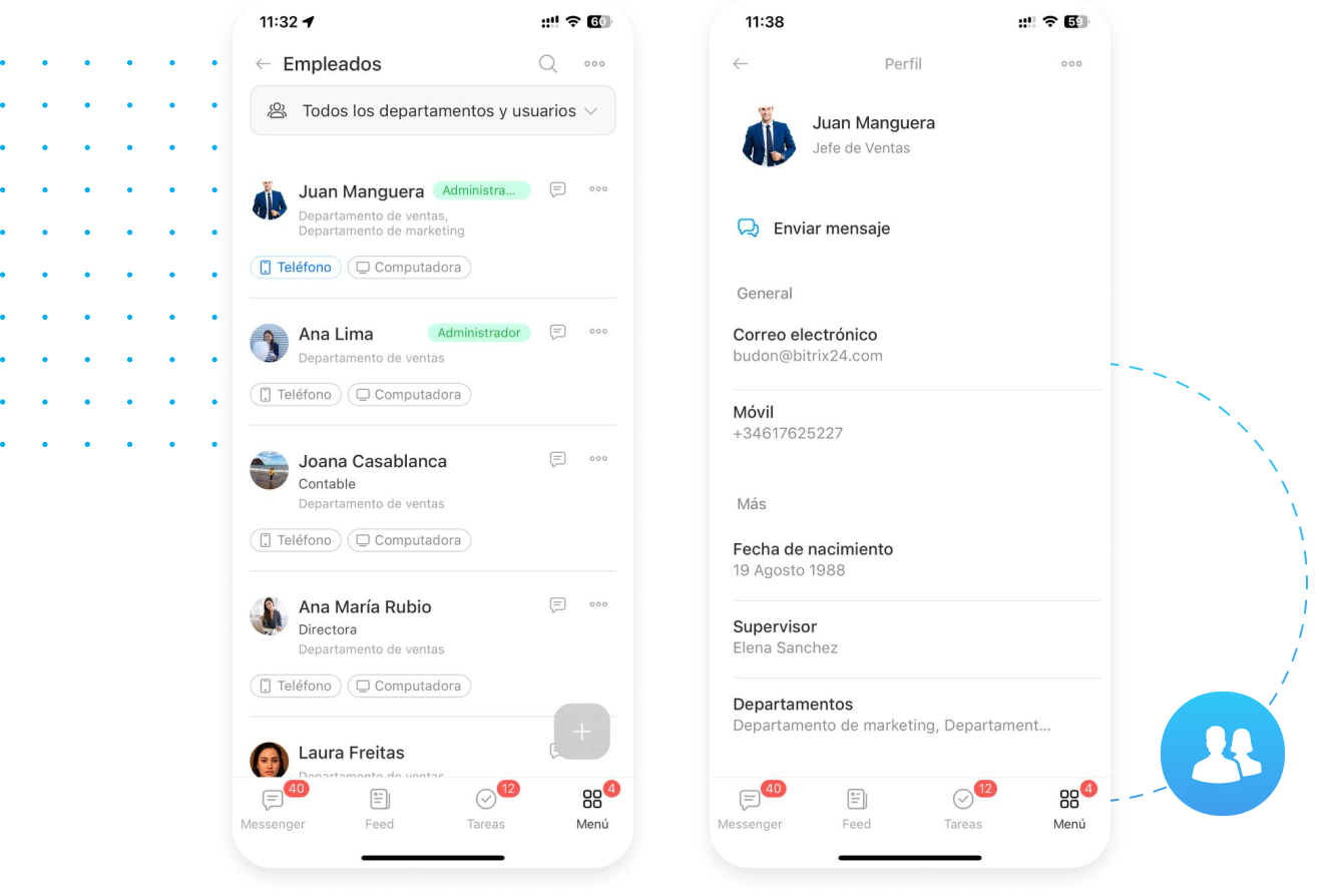Bitrix24 Messenger garantiza una comunicación rápida, productiva y segura que está integrada de forma natural con el resto de nuestras herramientas de colaboración y CRM.